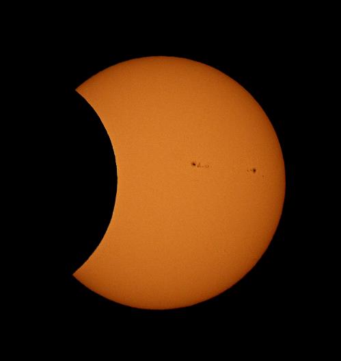 Images taken with a Canon EOS, Tak FS-102 and Orion solar filter, beginning just before the start of the eclipse and continuing through sunset.