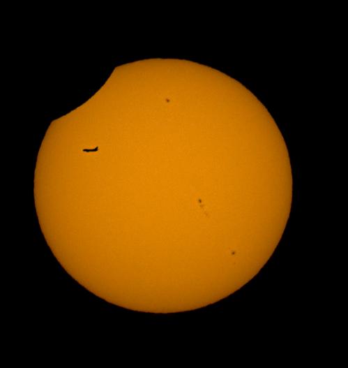 Images taken with a Canon EOS, Tak FS-102 and Orion solar filter, beginning just before the start of the eclipse and continuing through sunset.