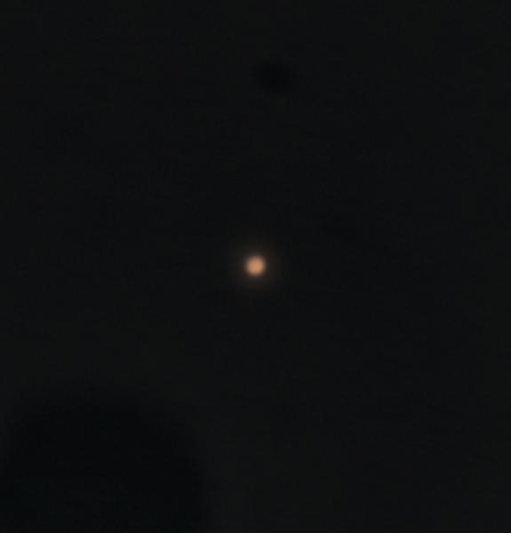 | Mercury close to far conjunction. Tak TOA 150, 2x Powermate, Skynyx 2-1 Camera While taking images of Venus (at near conjunction) I slewed to Mercury which was at about Alt 40 degrees. Taken in full daylight at 3PM Mar 22 2009 Mercury is nearly full, with an angular separation from the Sun of about 8 degrees 12 minutes ( just far enough to safely image) and at a distance of about 1.35AU. Venus, at Near Conjunction (see Venus Conjunction page) was about 12.5 degrees from the Sun and at a distance of only 0.285 AU by comparison. |