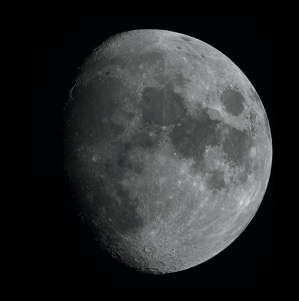 | TOA-150, 2x Powermate, DMK Mono Camera 3x2 mosaic, each panel from a 1000 frame AVI Stacking with AVI Stack, Gaussian Wavelet function in Registax Click on image for full size There is a lot more detail here than can be seen in the image above. The rays from the ejecta are particularly prominent on the full image. |