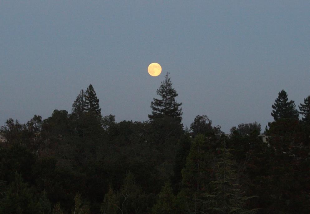 | Moonrise August 31, 2012 The second full moon of that August Canon Rebel The term "Blue Moon" has several different meanings. One is the second full moon in a calendar month. The lunar cycle, full moon to full moon, is about 29.5 days so these occur only every 2-3 years. Since the defined beginning and ending of a month depend on the local time, a Blue Moon may occur in a given month for one time zone but for another time zone. |