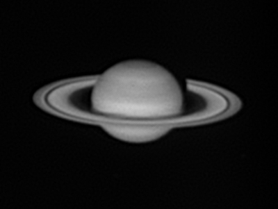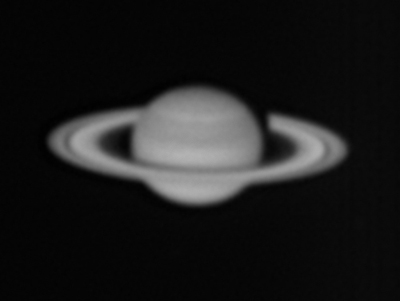 | Celestron C14, 2.5x Powermate. Flea3 (0.125"/px), Astronomik RGB and Baader NIR filters (see below). Starlight Xpress Fitler Wheel FireCapture for Capture (Highly Recommended) 2000 frames (each) captured, 250 to 400 frames stacked AVIStack2 and Registax6 for processing Saturn is low in the south, and worse that is an area where I get coastal haze/fog but on the morning of 5 Feb I did manage to get my first image of Saturn for 2012. Because of the low Alt, relatively lower Blue QE of my camera and the haze, the blue channel was particularly dim. Admittedly the long exposure times and total capture times are in large part due to the very small image scale for this target with the 2.5x Powermate but I was also imaging Mars that morning and did not want to change configuration. So I used 2x2 binning for the Blue data (only). The final image is: IR for Lum, Red+IR for Red, Green for Green (all unbinned) and Blue binned 2x2 for Blue. The 2x2 binning lost some resolution but shortened the exposure time thereby also improving the resolution and made total capture time more manageable. Note that the Flea3 camera has a native maximum gain of 24 dB (Gain Setting = 2400) but that FireCapture allows you to run in an extended gain range up to 32.37 dB (Gain Setting = 3237). Separate Channels are below |
