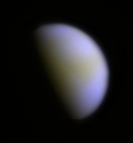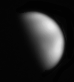 | TEC Mak Cass 250/20, Lumenera Infiinity 2-1m, Astrodon J-C UV filter and Astronomik iic R filter 2000 frames, AVIStack 2, Registax, Photoshop CS4 July 31 2010 at 2000H local time(about 15 minutes before sunset) Alt 26 deg This is my first attempt at UV imaging. Just about everything is against you in this setting, with relatively low camera QE and scope light transmission (relative to what you would get with visible light) and with even worse seeing and atmospheric distortion than for the visible blue band. I managed to get subframes at about 24 mS which is remarkably long for Venus at mag -4.2. The color image uses a visible light R filter for the red and green channels, and UV for the blue channel. Venus is a uniform cream color in visible light. In UV one still cannot see surface features, but one can pick out differential absorption in the cloud cover. In UV the poles are white, and the remainder of the planet gray with darker swirls due to differing amounts of sulfur dioxide and sulfuric acid in its upper atmosphere. |