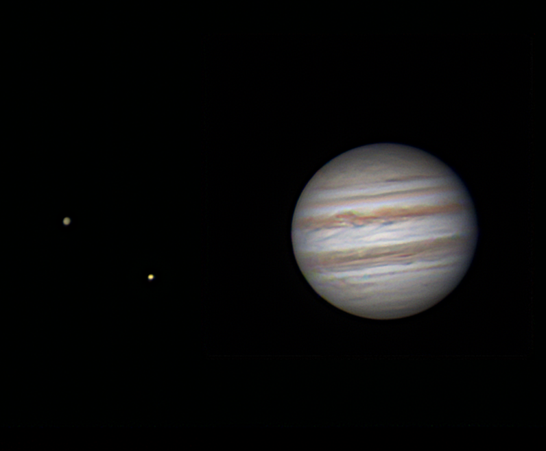 | Astronomik RGB filters. Starlight Xpress Fitler Wheel FireCapture for Capture (Highly Recommended) AVIStack2 and Registax6 for processing Ganymede is to your left (farther from Jove) and Io nearer Jove |