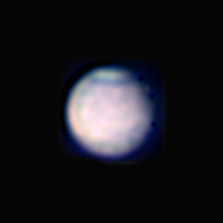 | Celestron C14, 2x Powermate. ASI 120MM (0.08"/px) Astronomik RGB filters. Starlight Xpress Fitler Wheel FireCapture for Capture (Highly Recommended) AVIStack2 and Registax6 for processing Only 220 days to opposition! Apparent Diameter 4.14 Arc Sec Not much detail to see. This is the "bland side" of Mars. But the vague purple from 4 o'clock to 7 o'clock is real per CalSky: |